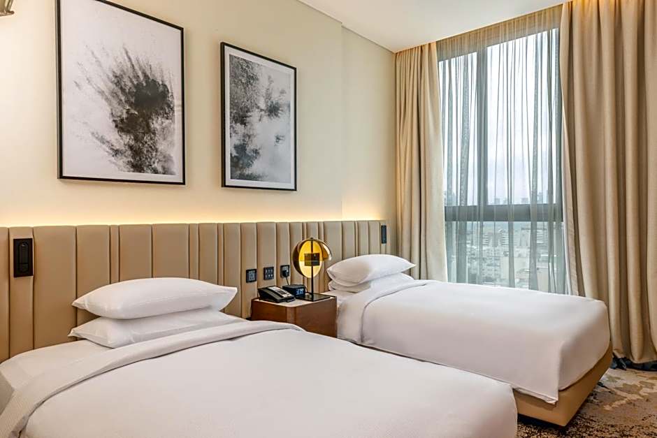 The air-conditioned suite features a flat-screen TV, a mini-bar, a tea and coffee maker, a seating area as well as city views. The unit has 2 beds.